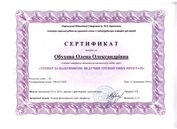 Я не отношусь к бесконечным коллекционерам сертификатов. Главной официальной бумагой считаю все же официальный психологический диплом. Все последующие документы получаются мной лишь "по делу" и укрепляют мою позицию в более стабильную сторону.