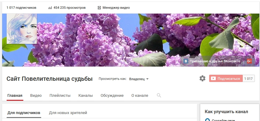 Ссылка на ленту ютуб портала «Повелительница»