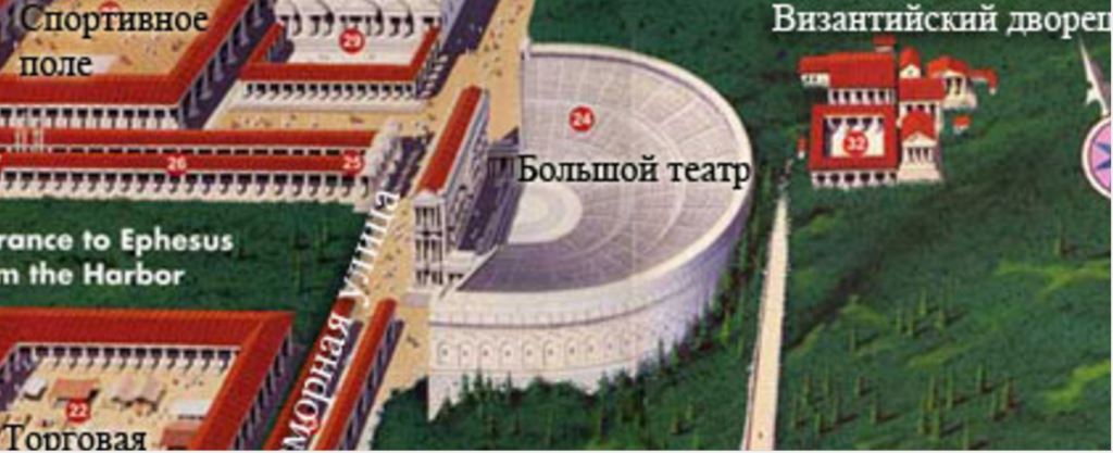 При вопросе, а было ли там около стен древнего Эфеса море, - мне пришло море в отдалении примерно с километр. без порта, просто как водная поверхность с неблагоустроенным берегом.