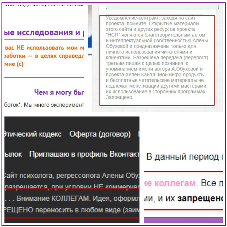 Причем на каждой странице моего сайта писала просьбы, потом напоминания, потом грозные предупреждения большими буквами: что нехорошо, и попросту запрещено заимствовать мои материалы и выдавать за свои. Слепой бы не заметил.