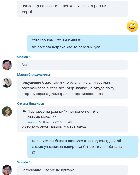 А тем временем еще продолжилось обсуждение этого нестандартного видео-занятия в нашем чате.