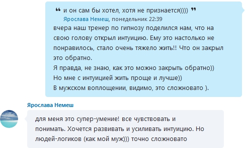 Комментарий клиентки и участницы проекта: "прохожу курс по взаимодействию с подростками у дольно известного официального психолога. Все, как полагается. Теория, примеры. Все четко, понятно, адекватно и в рамках классической психологии. В конце - ответы на вопросы родителей. Звучит специфический вопрос - и ответом стало довольно длинное повествование о мире душ, о контрактах, задачах душ детей и родителей. Я сильно удивилась."