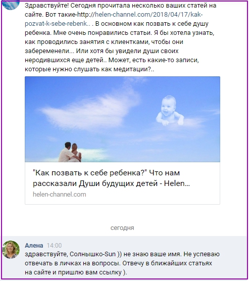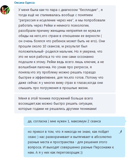 Чат. Одна из специализаций "Хелена" - работа с психологическим бесплодием
