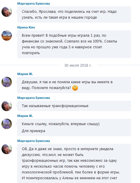 • Чат. Поговорили о трансформационных играх