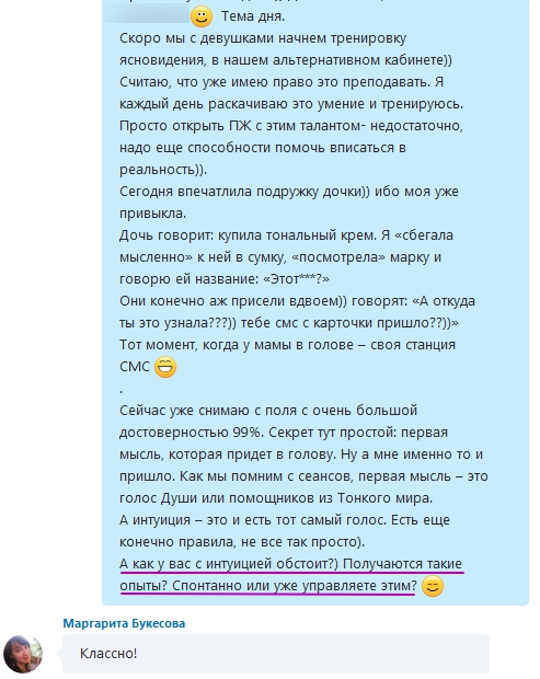 Чат. Тема тренировки интуиции и яснознания
