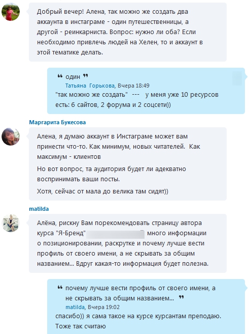 Вопрос касался создания моего аккаунта в Инстаграме. До этого лета я вообще не рассматривала эту тему, не понимаю, зачем кому-то знать, "что я ем на завтрак"))).