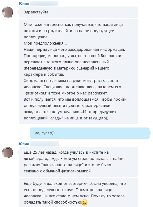 • Чат. О связи внешности между нашими воплощениями (большая беседа)