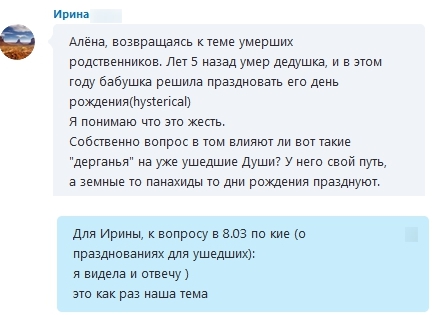 Чат. Как наши близки помогают нам "с того света" (часть 1, обсуждение)