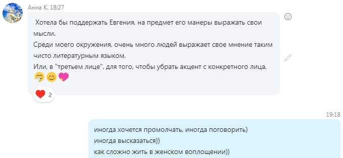 • Чат. Болталка: иногда нас включают неожиданные разговоры