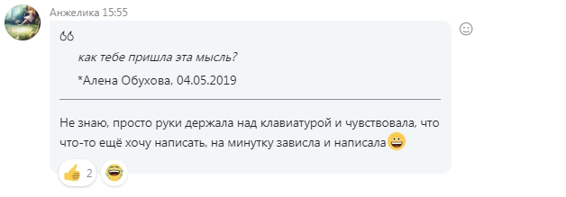 Общение между нами происходит, конечно, телепатически. То есть за секунду словно вливаются гигаобьемы инфы. Отчего человеческая речь кажется очень медленной и вызывает нетерпение)) Этот Ангел точечно указывает мне направления, точечно подсвечивает критичные участки и высвечивает (помогает увидеть) то, что я сама не вижу.