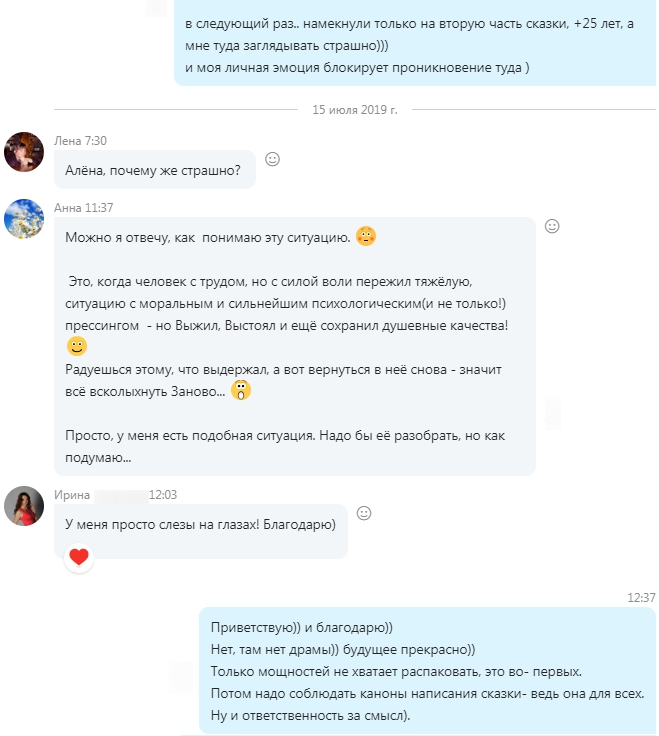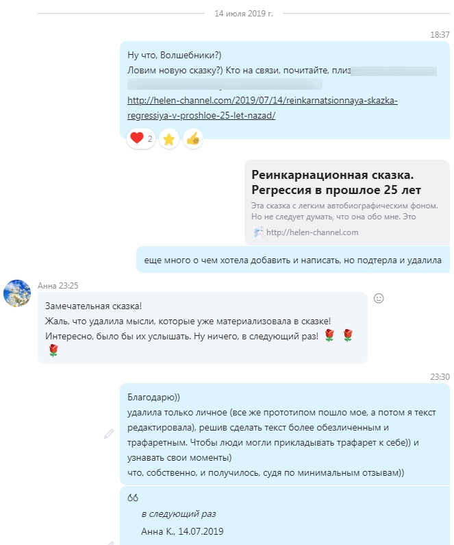 Чат. Обсуждение сказки "Встреча с Собой: регрессия в прошлое 25 лет назад"