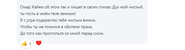 А про Хайяма.. У него же практически все стихи с примесью темы алкоголя (я Хайямом увлекалась еще с 20 лет с легкой руки одной моей свекрови)) и знала его наизусть.