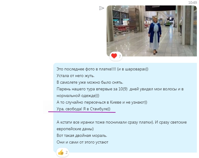 А как дошло до дела, даже такая продвинутая в этих традициях персона, как я, - испытала почти нервный срыв - когда надо было пройти в самолет уже в платке.
