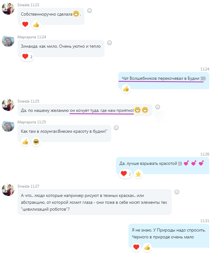 я же ничего не делаю просто так )). Хотя иногда и сама не понимая своих порывов, но в целом.. - мы за любой движ, если он о Прекрасном )).