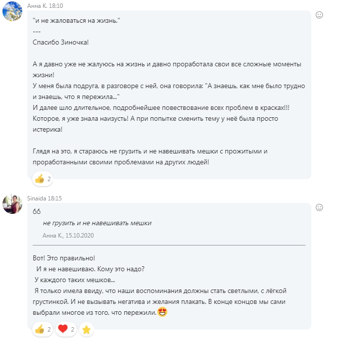Sinaida: Спасибо, Алёна! Я, несколько лет назад решила, что все трудности в жизни уже прожила, все кармические долги раздала и оплатила. Теперь имею намерение пожить спокойно и благополучно.
