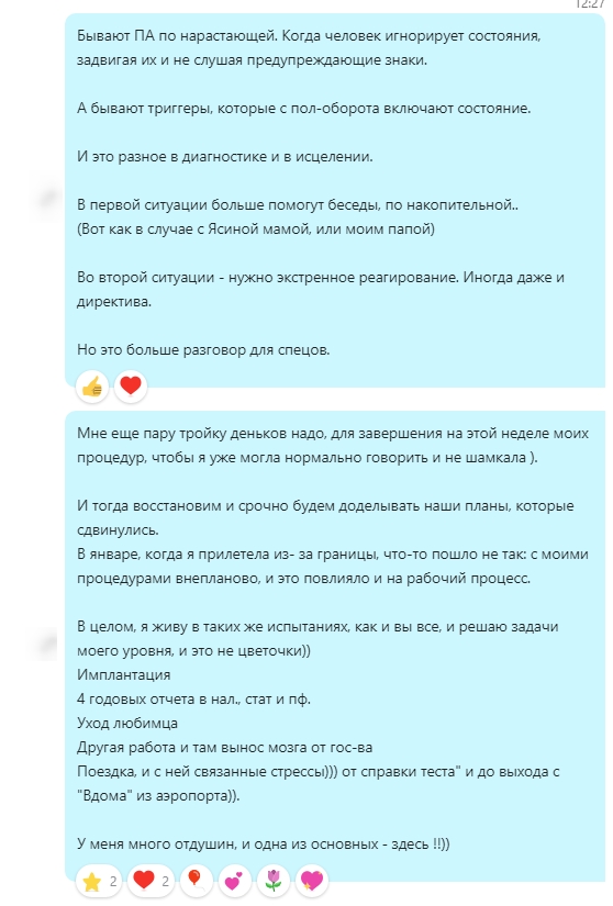 Во-вторых, у многих поднимаются родовые динамики, в этом процессе.