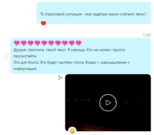 А в это очередное необычное время - у меня нет энергии на новую аудиторию внешнего интернет-ресурса, энегетически потянуть встройку в то инфополе.