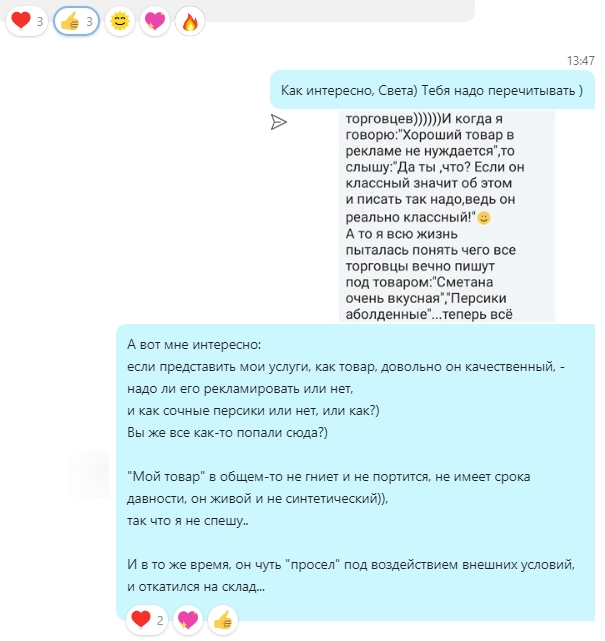 Алёна мне кажется регресс как персики не порекламируешь)))И я по прежнему придерживаюсь мнения:"Хороший товар в рекламе не нуждается".Я сама попробую сметану и решу классная она или нет и более того буду понимать,что сколько людей столько и вкусов и один и тотже продукт мы все оценим по-разному.