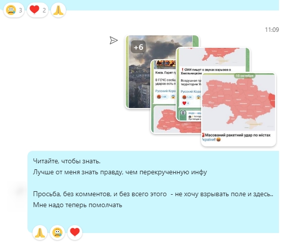 Вчера вечером в голове всё время и сегодня весь день звучала одна и та же фраза:"Это не твоя игра и чтобы не происходило дальше не включайся,просто Принимай и Сохраняй спокойствие"(Есть вещи,которые у меня тоже с Украиной связаны,но здесь про это не пишу).
