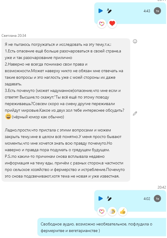 Вчера на подобное начитала аудио в воен.чате, - но не решусь его выкладывать вовне, наружу, ещё тестирую.