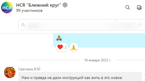 А ещё как качество таких групп это когда кто-то может сделать что-то хорошее для другого человека просто так,не ожидая выгоды и ничего взамен,что в начале удивляет,а потом запускает цепную реакцию и уже другие участники способны делать тоже самое для любого участника(необязательно того самого первого и также не ожидая ничего взамен).Такой вот энергообмен необычный.