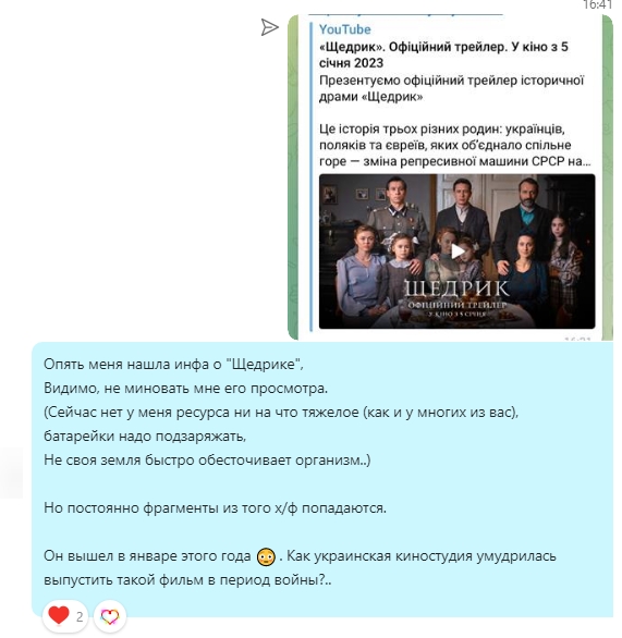 Я рассказала о новом фильме "Щедрик", о военных событиях и истории трех народов: поляков, украинцев и евреев,