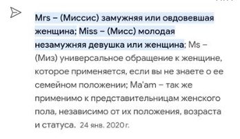 Если с Мисс всё понятно, то между Mrs и Ms пришлось уточнять