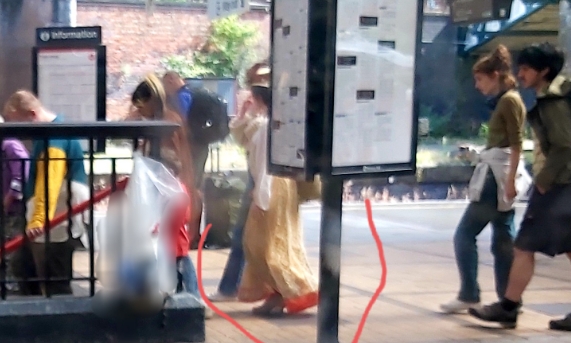 На фото нечётко видно, - посреди людей идёт девушка из другой эпохи, 19 века, - я аж глазки протерла,