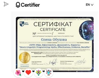 Прислали сертификат, про НЛП на этот раз,