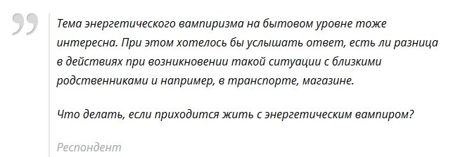 Тема бытового вампиризма преследовала меня саму многие годы. Сейчас эта тема полностью для меня закрыта. Я ликвидировала всех вампиров вокруг себя. Они на меня не действуют и не достают. Я им уже не вкусная))