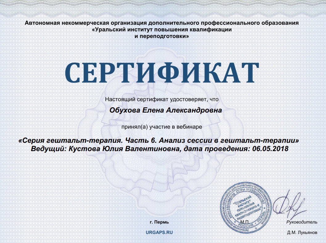 Мне нравится повышать квалификацию и адаптировать классические методики под нашу новейшую психологию.