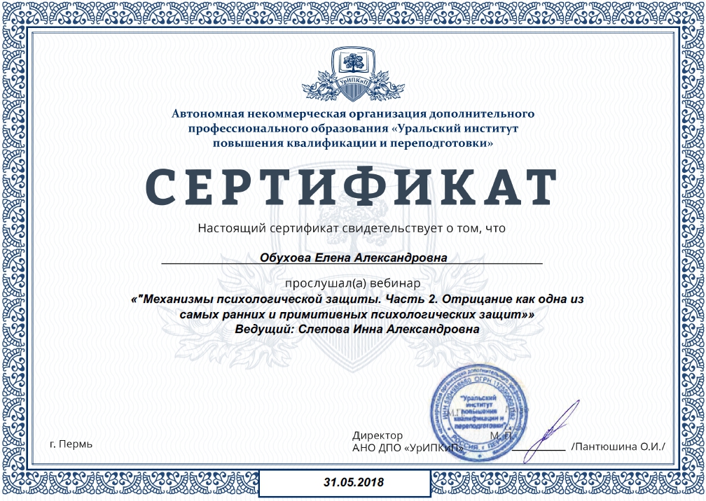 Была рада внести в свой профессиональный инструментарий и это понимание отрицания как защиты. - А.О.