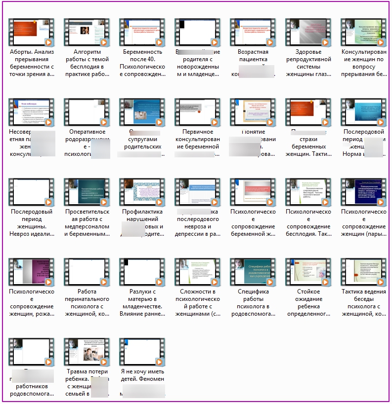 В области перинатальной психологии изучила темы: