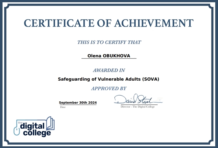 КУРС 1 защита уязвимых взрослых Safeguarding of Vulnerable Adults (SOVA)