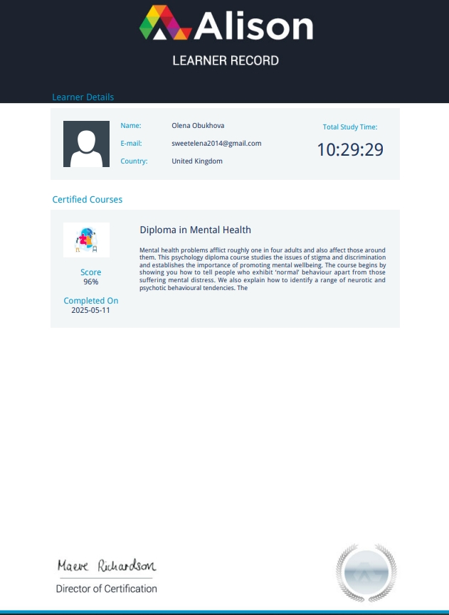 Курс Диплом в области психического здоровья