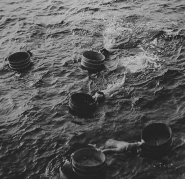 Привозят ныряльщиц на место погружения в лодке, прикрепляют веревку, пропущенную через блок, и для утяжеления вешают пояс со свинцовыми грузиками»