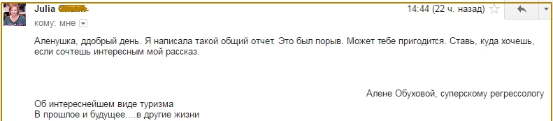 Алена меня очень бережно повела в путешествие в неведомые пространства, где, оказалось, я могу понимать все телепатически и получать ответы на мучившие меня вопросы.