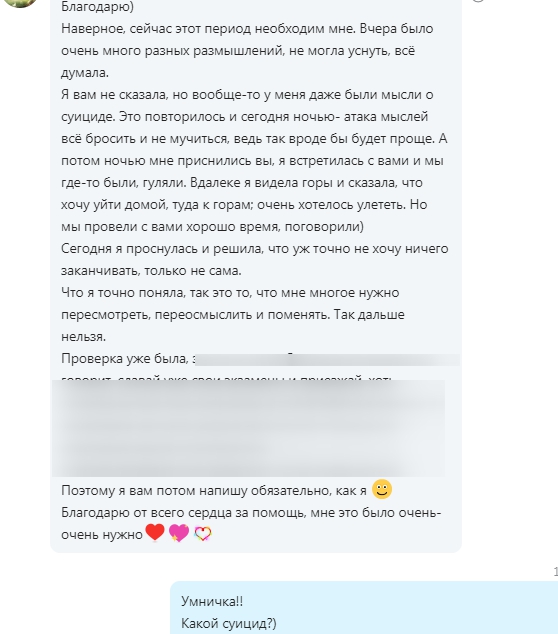 • Отзыв по сеансу: "стресс, не хочу идти домой"