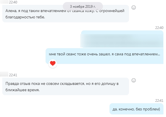 Отзыв по сеансу.